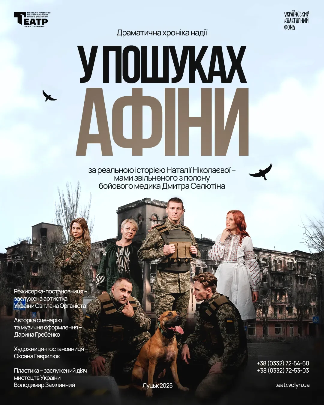 Відверті інтерв’ю мами звільненого з полону, військових та режисерки-постановниці вистави «У пошуках Афіни» – про силу театру, що об’єднує, підтримує і повертає віру.